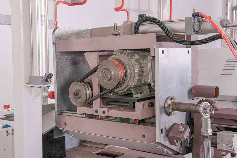 – Mặt trước và sau đỡ máy là thép dày, piston chuyển góc lớn. Giúp máy chắc chắn và ổn định. Có chốt hãm hơi đầu máy 2 khi di chuyển lấy kích thước.