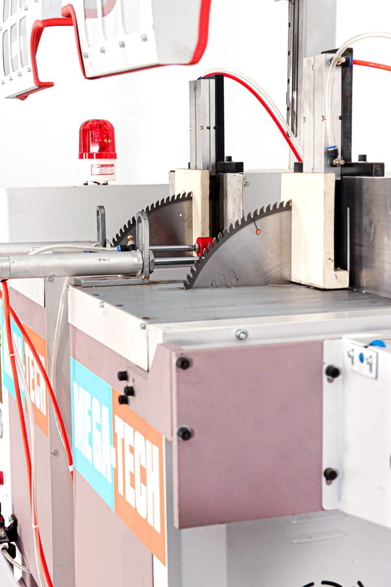 Máy cắt được 2 góc cắt 45° và 90° cùng lưỡi cắt có đường kính lên tới 450 thương hiệu Wangen Nhật Bản, cắt được mọi loại nhôm trên thị trường hiện nay như: nhôm Việt Pháp, nhôm hệ vát cạnh 55, nhôm Xingfa, nhôm hệ cửa thủy lực (bản cắt chéo 25cm). Sản phẩm đầu ra có góc cắt đẹp, không bị hiện tượng văng nhôm, nổ nhôm, móp nhôm.